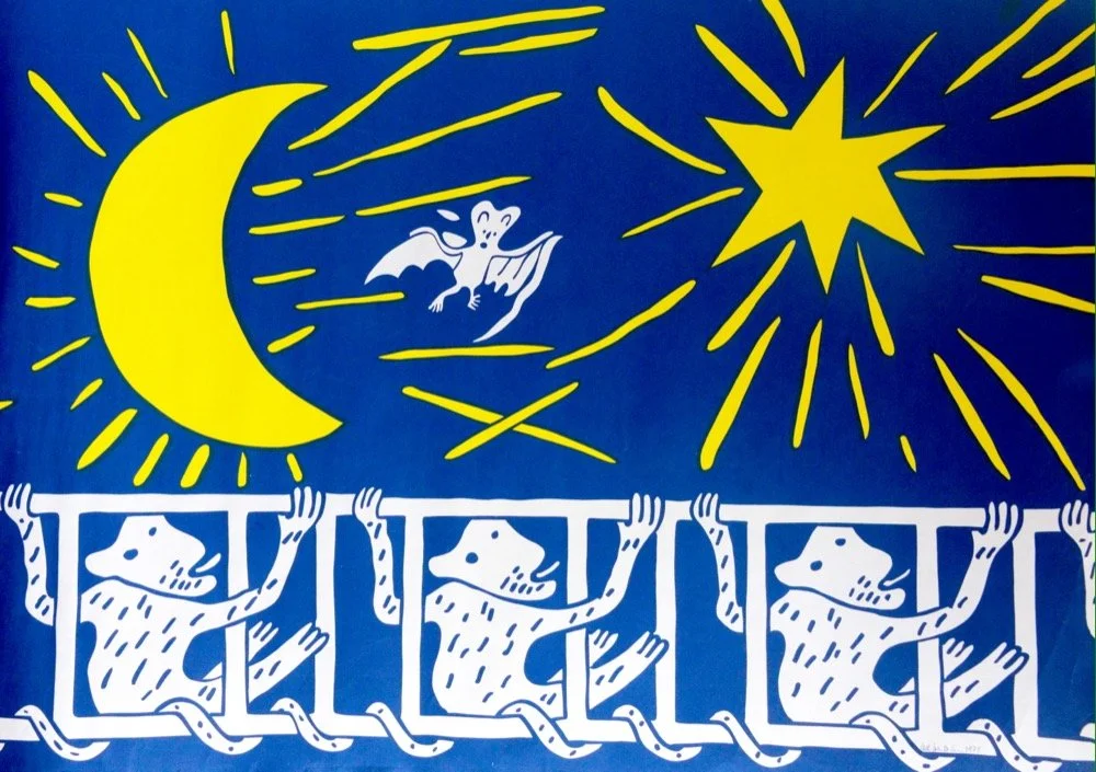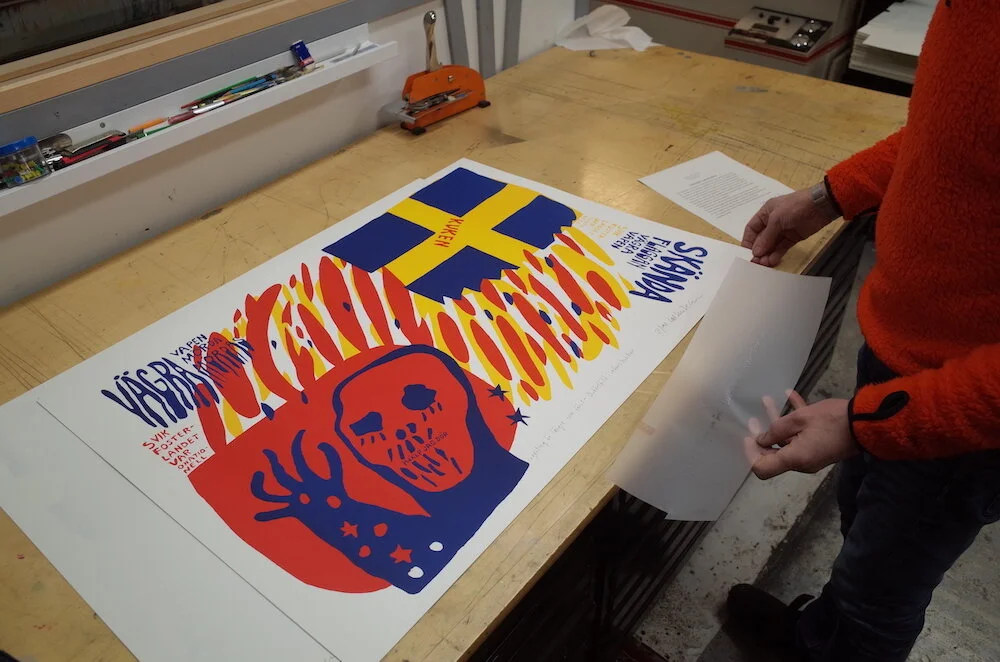 Nu rekonstruerar jag och Björn Lumphé den sällsynta dubbla bilden, på den senares litografiska verkstad.